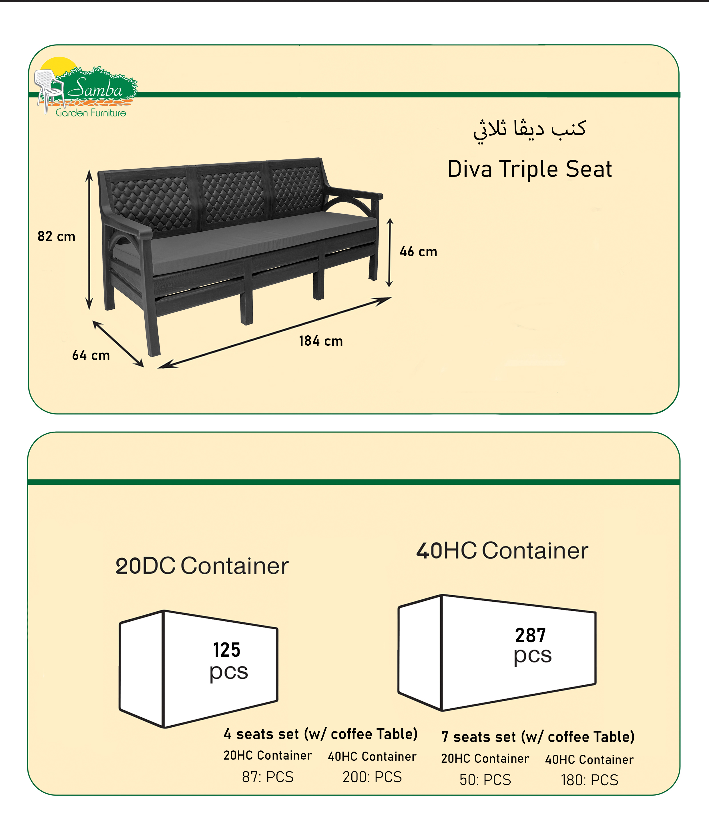 - يمكنكم تنسيقه مع مقعد الديڤا الثنائي و الفردي كطقم حدائق كامل ليتناسب مع الأماكن الداخلية و الخارجية