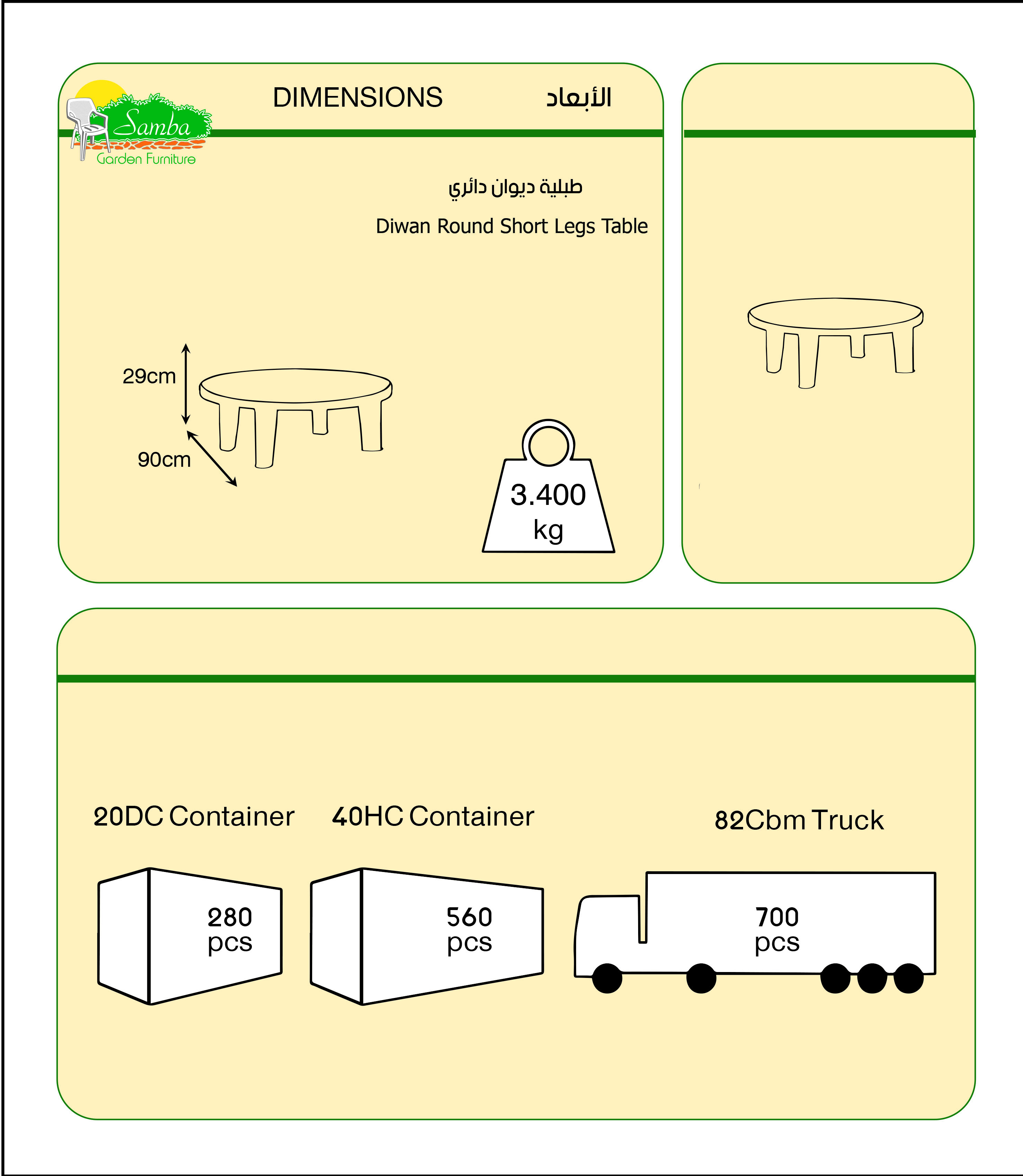 - طبلية بأرجل قصيرة بارتفاع 29 سم تناسب الجلسات الأرضية