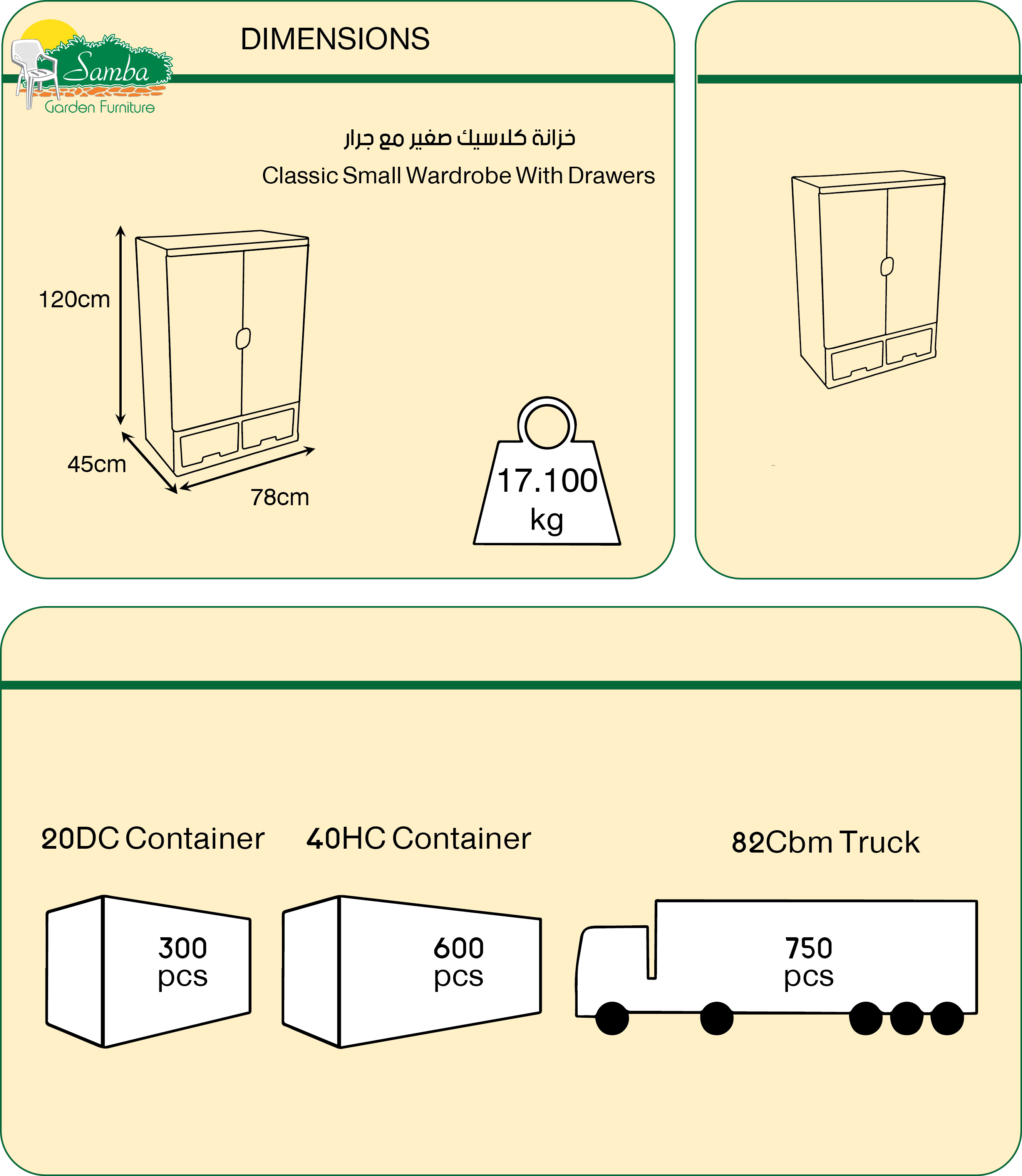 - Wardrobe with two doors, three shelves and TWO drawers